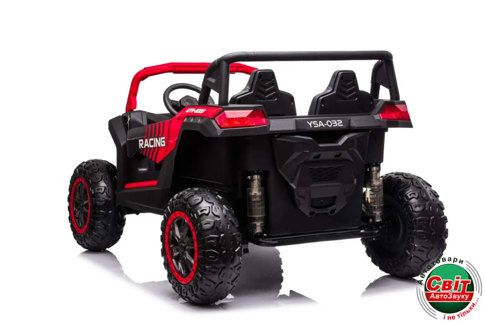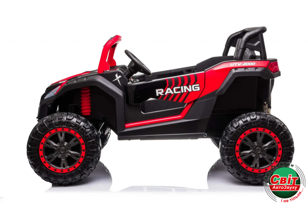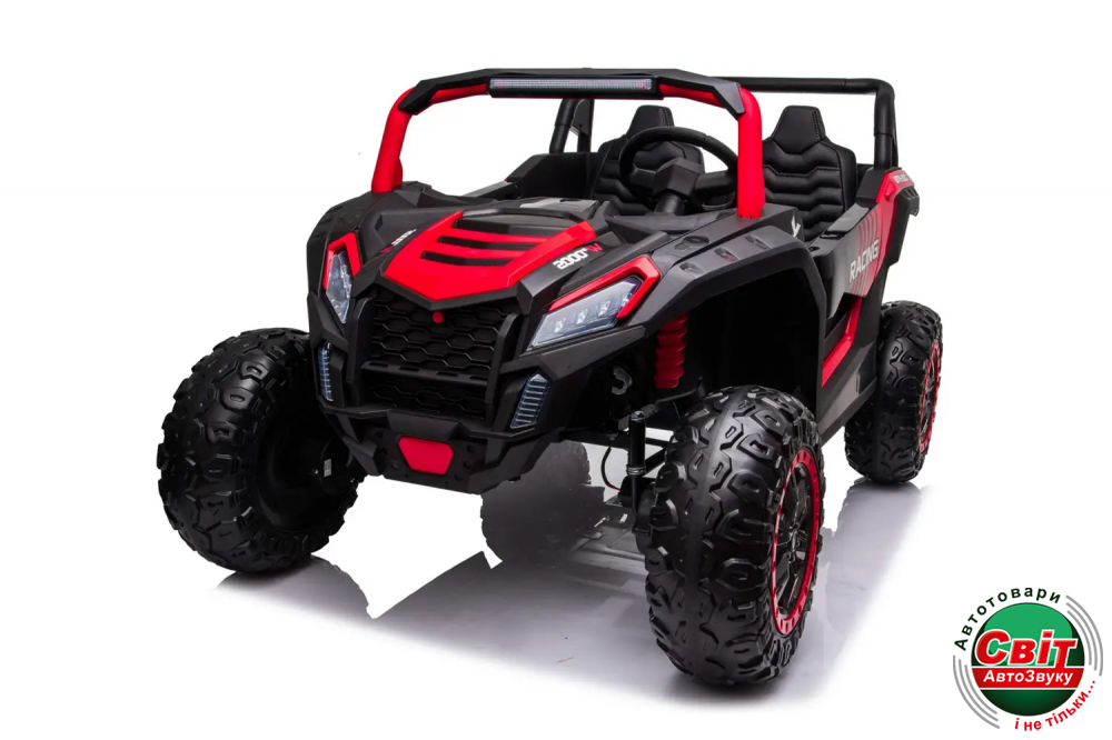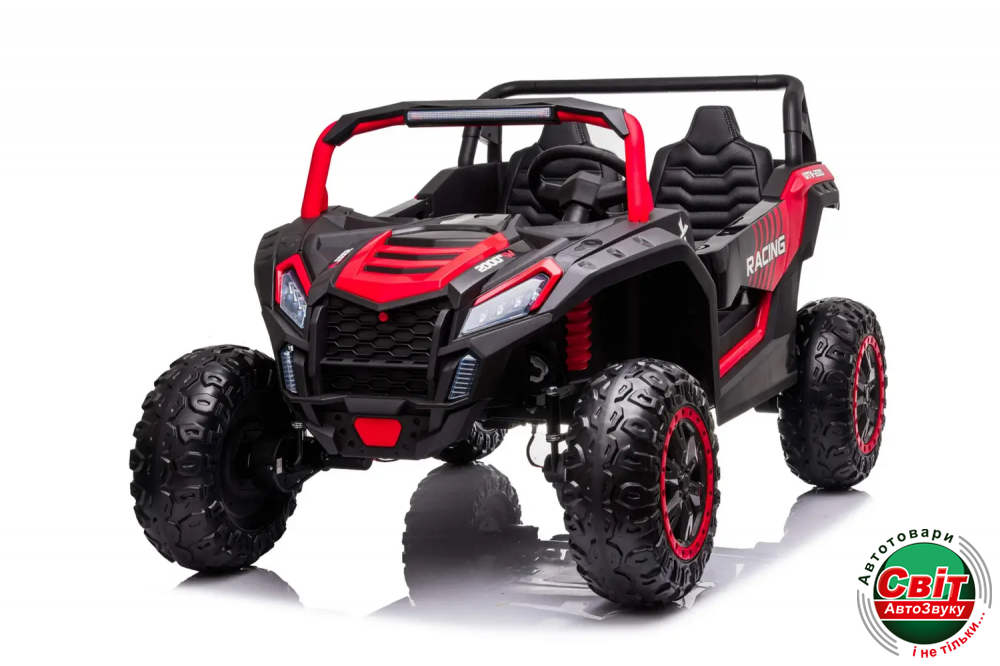 Дитячий електромобіль Багги Kidsauto Racing (24V) червонийДвухместный баггі Racing 24V - самый большой и самый мощный детский внедорожник в классе. Функционал детского электромобиля впечатляет: внедорожные колеса с агрессивным протектором в сочетании с двумя моторами суммарной мощностью 400 Ватт с легкостью преодолеют ямы ухабы и подъемы. Максииальная скорость до 12 км/ч. На полном заряде внедорожник проедет около 7 км пути.