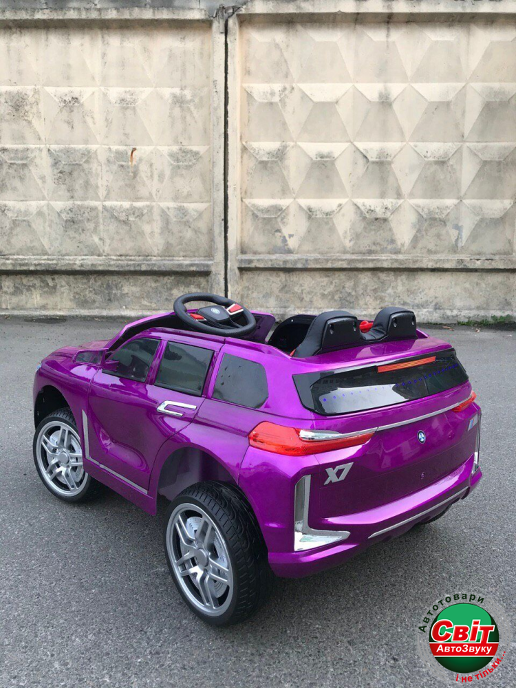 Дитячий електромобіль Kidsauto BMW X7 style 4Х4 purpleНовинка! Компактный детский внедорожник BMW X7 style 4Х4 с системой постоянного полного привода! Электромобиль выполнена в узнаваемом футуристичном дизайне кузова. Четыре мотора в связке с 12V-аккумулятором обеспечат отличную проходимость. Колеса из EVA-резины, амортизаторы, плавный разгон, кожаное сидение с ремнем безопасности позаботятся о безопасности и комфорте ребёнка. В автомобиле предусмотрено водительское и дистанционное управление.