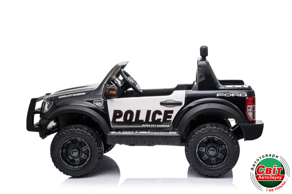 Дитячий електромобіль Kidsauto Ford Raptor POLICE с мигалкамиFord Raptor POLICE - полицейская версия двухместного детского внедорожника, созданного по официальной лицензии компании Ford. От базовой модели версия POLICE отличается наличием полицейской сирены, рации с громкой связью, проблесковых маячков на бампере и огромного сине-красного стробоскопа на верхней дуге машины. Кроме этого, дизайн детского электромобиля с тематическими стикерами POLICE выполнен в точности, как у внедорожников потрульной полиции США.