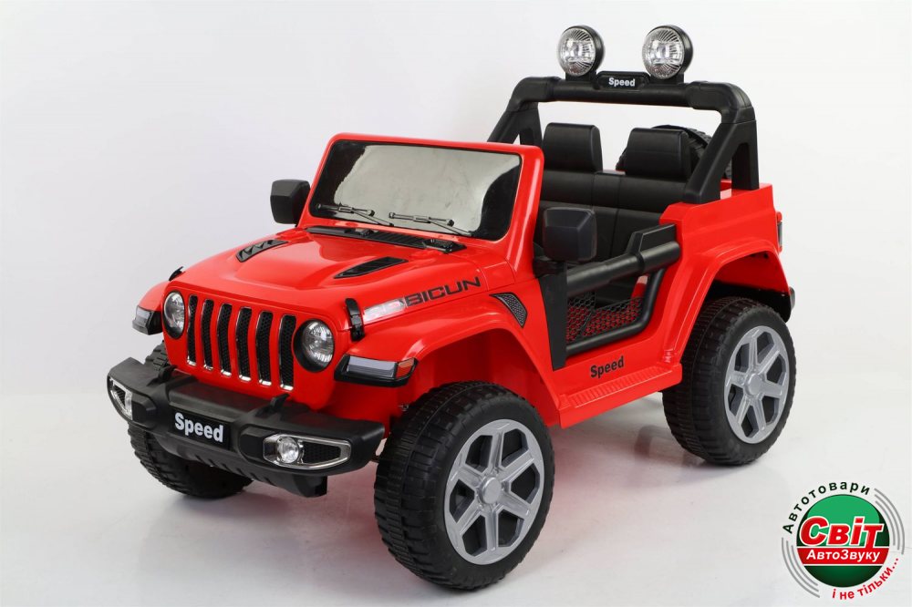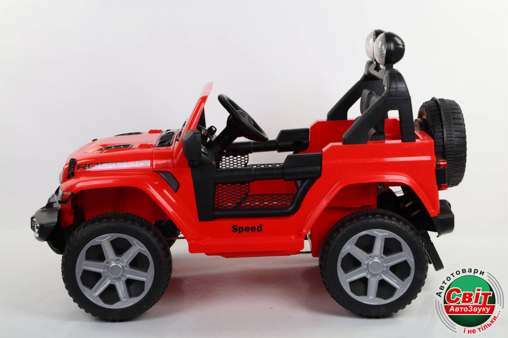 Дитячий електромобіль Kidsauto Jeep Wrangler Rubicon style 4x4 червонийWrangler Rubicon 4x4 - первый в мире полноприводный детский внедорожник, созданный по официальной лицензии легендарного бренда JEEP. Полный привод с переключателем режима: 4WD/2WD (4 ведущих / 2 ведущих колеса). Полный привод авто включается с помощью специальной кнопки на панели приборов. Высокий клиренс внедорожника и широкие резиновые колеса с амортизацией сгладят любые неровности дорожного полотна, а дополнительная защита днища и надежный каркас – обеспечат долгий срок службы электромобиля.