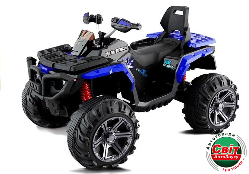 Дитячий електромобіль Kidsauto Maverick 4WD (блакитний)Полноприводный Maverick 4WD имеет классический дизайн настоящего взрослого квадроцикла и обладает не менее взрослым характером. Именно поэтому Maverick так нравится детям. Как и взрослый квадроцикл, “Maverick 4WD” оснащен ручкой газа (для плавного разгона и снижения скорости) и отдельной педалью для уверенного торможения.