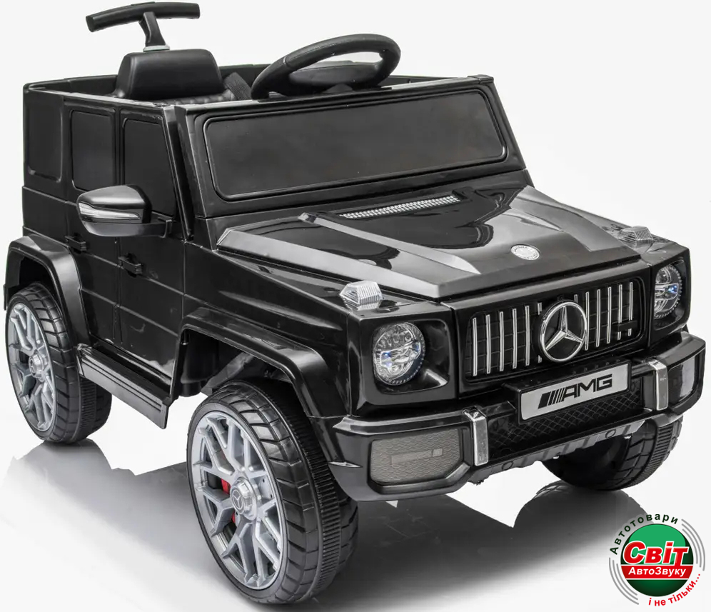 Дитячий електромобіль Kidsauto Mercedes-Benz G-class style чорнийMercedes-Benz G-class style - доступный детский электромобиль в стиле "кубика". Машина имеет педально-рулевое управление (из кабины) и дистанционное (Пульт 2,4G с кнопкой экстренной остановки и регулятором скорости). Предусмотрено все для безопасной, комфортной езды: упругие EVA-колеса, амортизаторы, плавный Старт/Стоп, кожаное сидение с ремнем безопасности, защелки-фиксаторы дверей. Музыкальный руль, МР3-плеер, яркие LED-фары сделают прогулку приятной и увлекательной даже в темное время суток.
