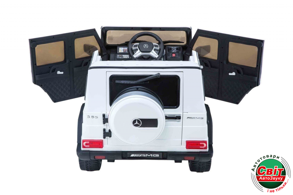 Дитячий електромобіль Kidsauto Mercedes-Benz G65 AMG 4х4 WhiteВнедорожник Mercedes-Benz G65 AMG - хит продаж среди детских электромобилей в Украине! Premium-комплектация. Чёрный лак (автопокраска). Резиновые колеса на амортизаторах. Комфортный салон с кожаным сидением и подсветкой панели. Мощная оптика, звуковые опции, MP3плеер с FM-радио. Водительское управление + пульт. Версия 2019: полный привод с переключателем режима: 4WD/2WD (4 ведущих / 2 ведущих колеса).