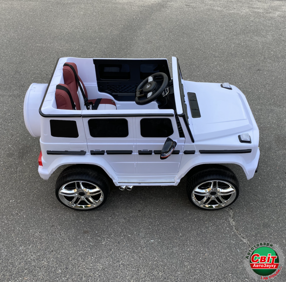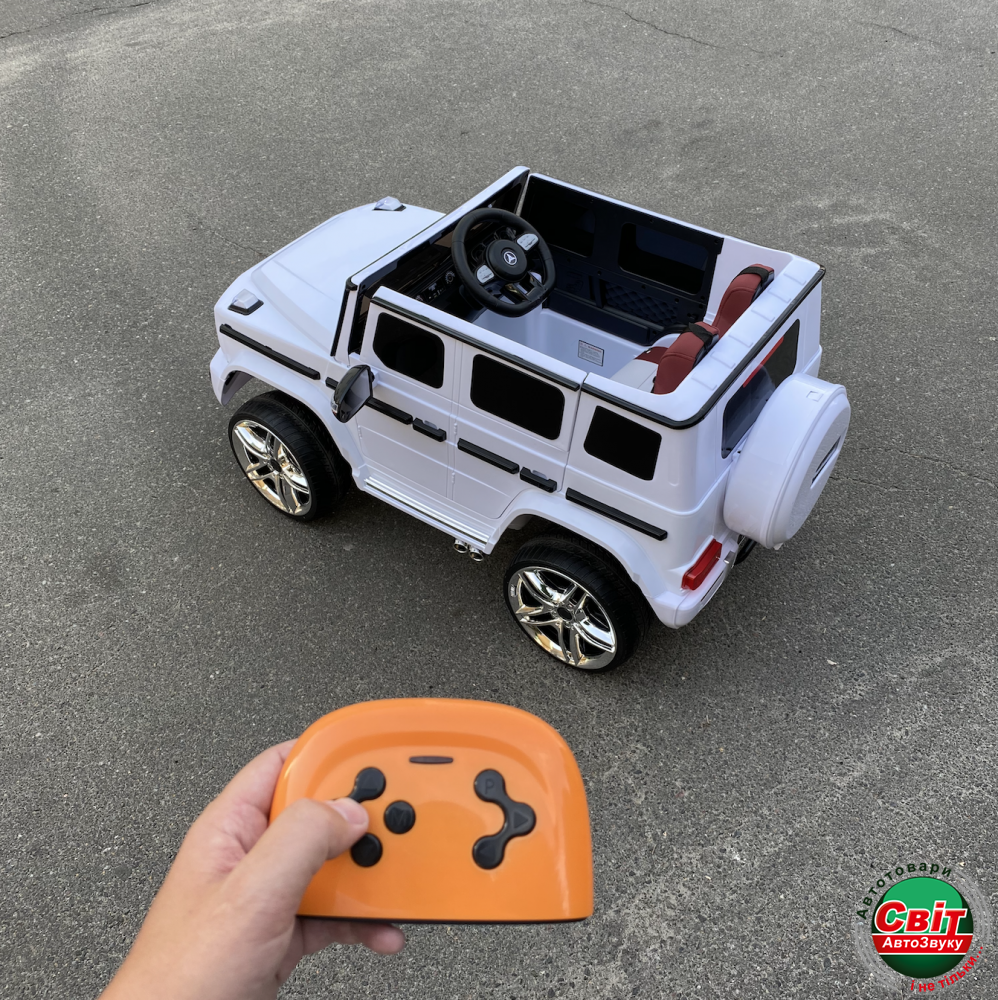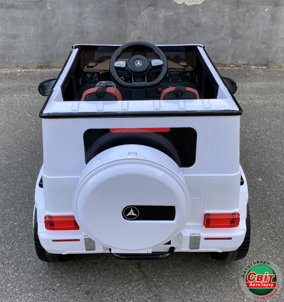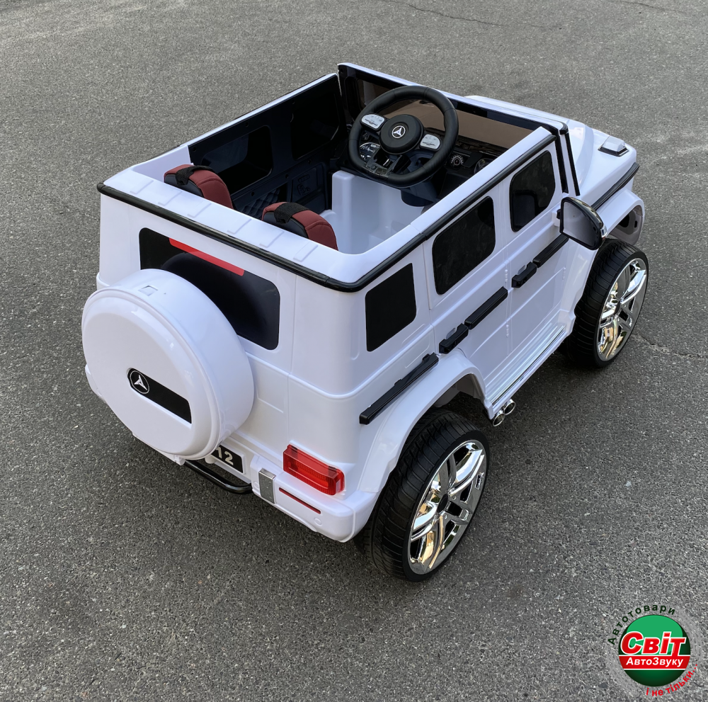 Дитячий електромобіль Kidsauto Mercedes-Benz G65 style 4WD білийMercedes-Benz G65 STYLE 4WD - детский внедорожник с системой постоянного полного привода. Машинка создана в стиле гелендвагена нового поколения: новый дизайн кузова, узнаваемая новая оптика и решетка радиатора. Белый лак (автопокраска). Высокий клиренс и четыре мотора в связке с 12V-батареей обеспечат достойную проходимость.