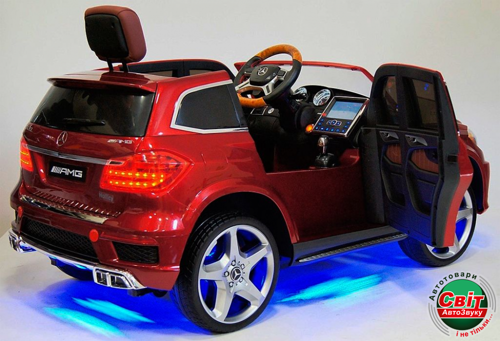 Дитячий електромобіль Kidsauto Mercedes-Benz GL63 AMG 4X4Официальный Mercedes GL63 AMG (4X4) превзошел все представления о детском электромобиле. Благодаря полному приводу с независимым дифференциалом, мягким EVA-колесам с амортизаторами, плавному Старт-стопу, машина демонстрирует незаурядные внедорожные качества и мягкость хода. Две раздельные педали(как во взрослой машине) - для ребенка. Пульт дистанционного управления (2,4 Блутуз) - для родителей. Электронный спидометр и индикатор заряда батареи.