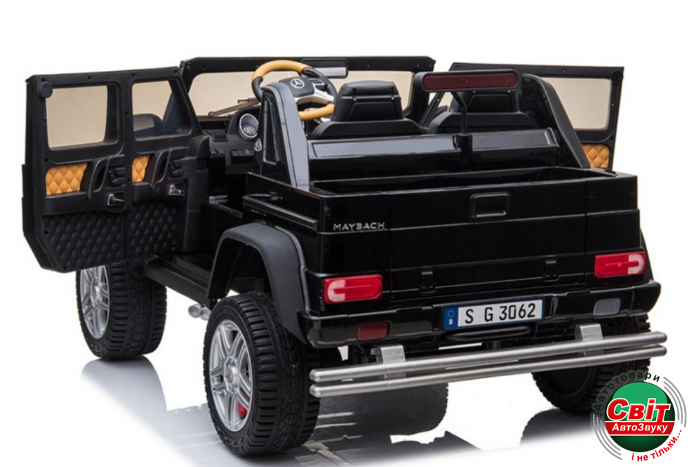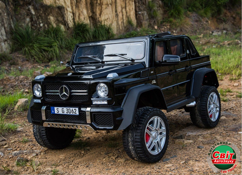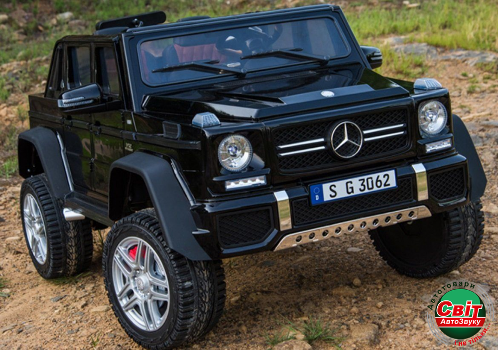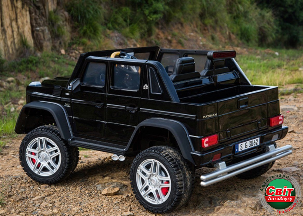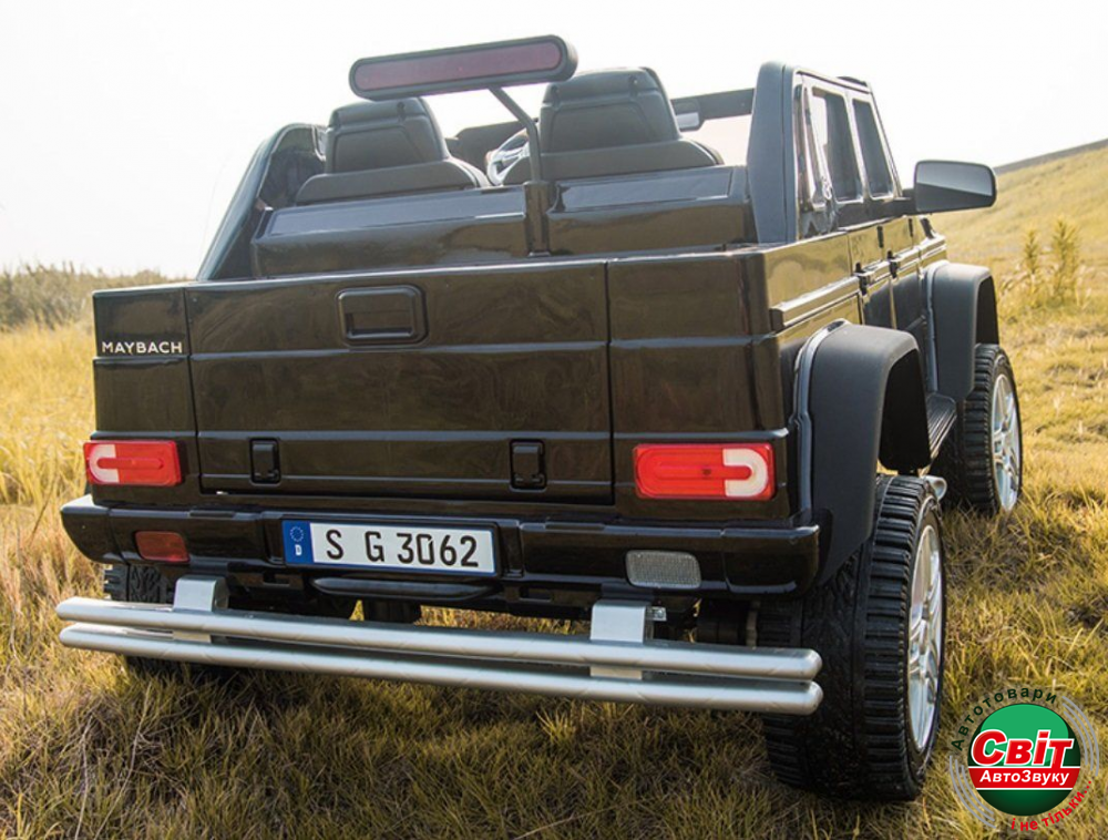 Дитячий електромобіль Kidsauto Mercedes-Benz Maybach G650 AMG BlackСамый большой двухместный детский внедорожник g-classa , лицензионный Mercedes-Maybach Landaulet G650 . Гелик, Гелендваген, или «автомобиль для бездорожья» имеет полный привод 4 мощных мотора и два усиленных аккумулятора по 12V7Ah . Большие мягкие колеса и высокий клиренс этого зверя на колесах отлично подойдет для загородной езды. МР4 - видео-планшет с сенсорным экраном.