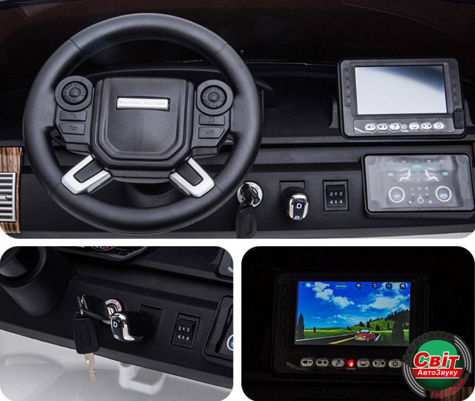 Дитячий електромобіль Kidsauto Range Rover (4WD, МР4 планшет) білий (двомісний)Range Rover - огромный двомісний детский внедорожник премиум-класса. Официальная лицензия Land Rover. Этот электромобиль идеально подойдет для активной езды, как в городе, так и по бездорожью. Полный привод с переключателем режима: 4WD/2WD (4 ведущих / 2 ведущих колеса). Полный привод авто включается с помощью специальной кнопки на панели приборов. Высокий клиренс внедорожника и широкие резиновые колеса с амортизацией сгладят любые неровности дорожного полотна, а дополнительная защита днища и надежный каркас – обеспечат долгий срок службы электромобиля.