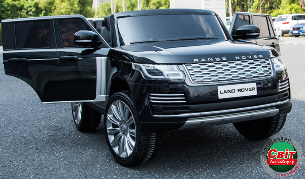 Дитячий електромобіль Kidsauto Range Rover (4WD, МР4 планшет) чорний (двомісний)Range Rover - огромный двомісний детский внедорожник премиум-класса. Официальная лицензия Land Rover. Этот электромобиль идеально подойдет для активной езды, как в городе, так и по бездорожью. Полный привод с переключателем режима: 4WD/2WD (4 ведущих / 2 ведущих колеса). Полный привод авто включается с помощью специальной кнопки на панели приборов. Высокий клиренс внедорожника и широкие резиновые колеса с амортизацией сгладят любые неровности дорожного полотна, а дополнительная защита днища и надежный каркас – обеспечат долгий срок службы электромобиля.