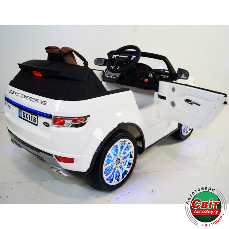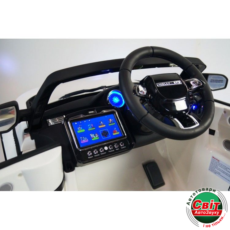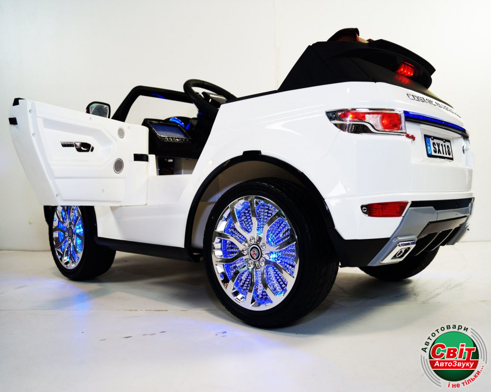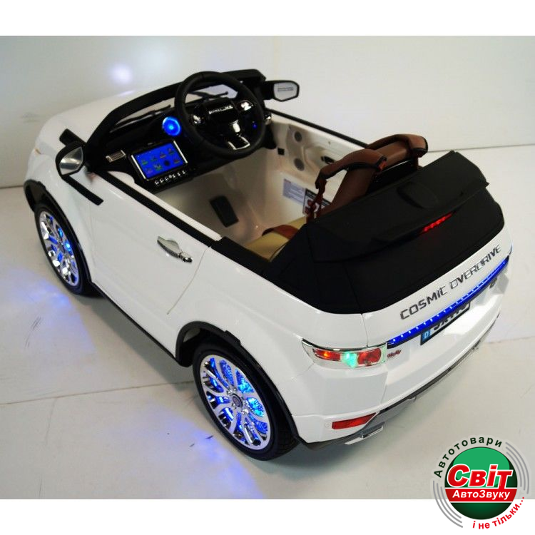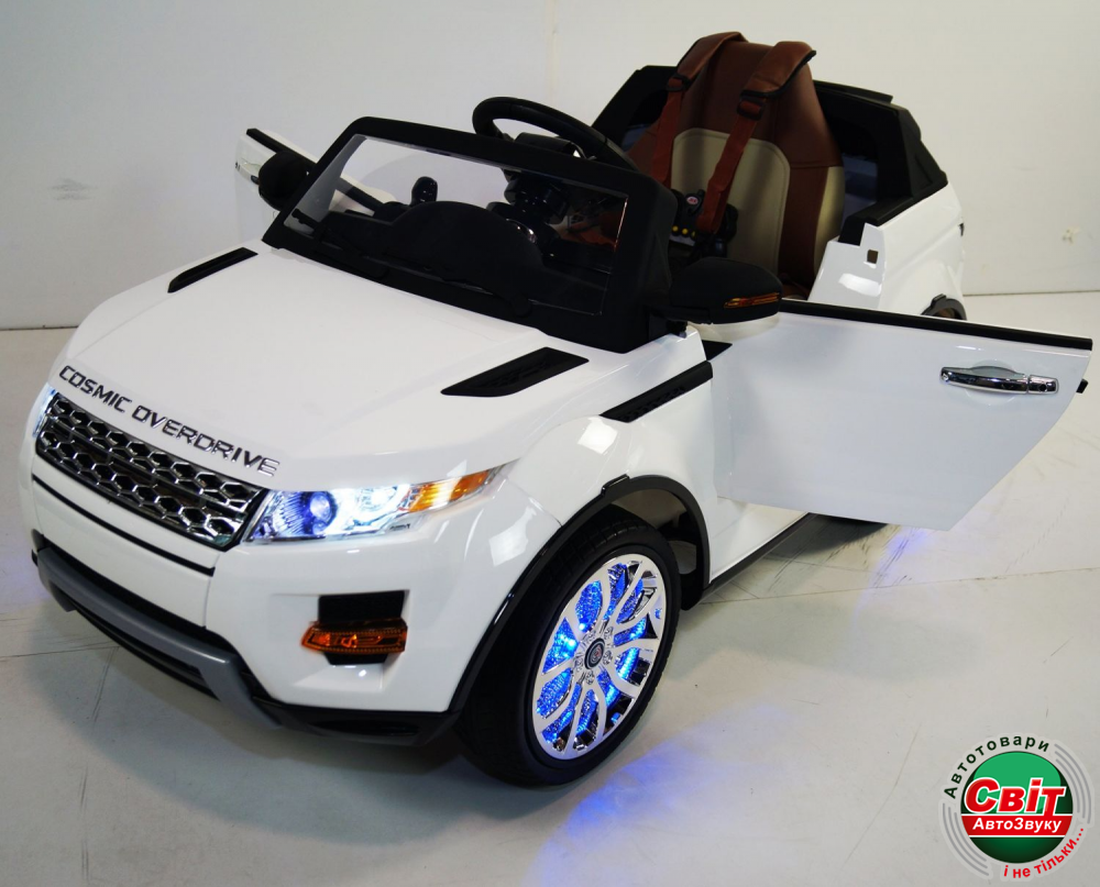 Дитячий електромобіль Kidsauto Range Rover Style Premium WhiteRange Rover Style Premium c MP4-планшетом - отличный детский электромобиль, созданный по образу и подобию настоящего Range Rover. Предназначен для детей от 1 года до 5 лет. Качественный крепкий кузов, открывающиеся двери. Машина управляется водителем, или пультом управления Bluetooth 2,4G. Пульт имеет приоритет: Вы можете включить одну из 3-х скоростей, менять направление движения машины (не зависимо от действий ребенка), или воспользоваться кнопкой экстренной остановки «Стоп». Кроме того, сигнал пульта не «перехватывается» посторонними радиосигналами, например от пультов других электромобилей.