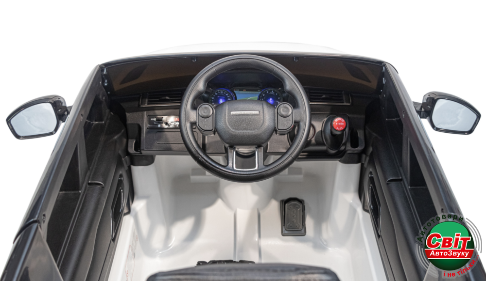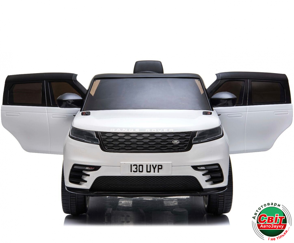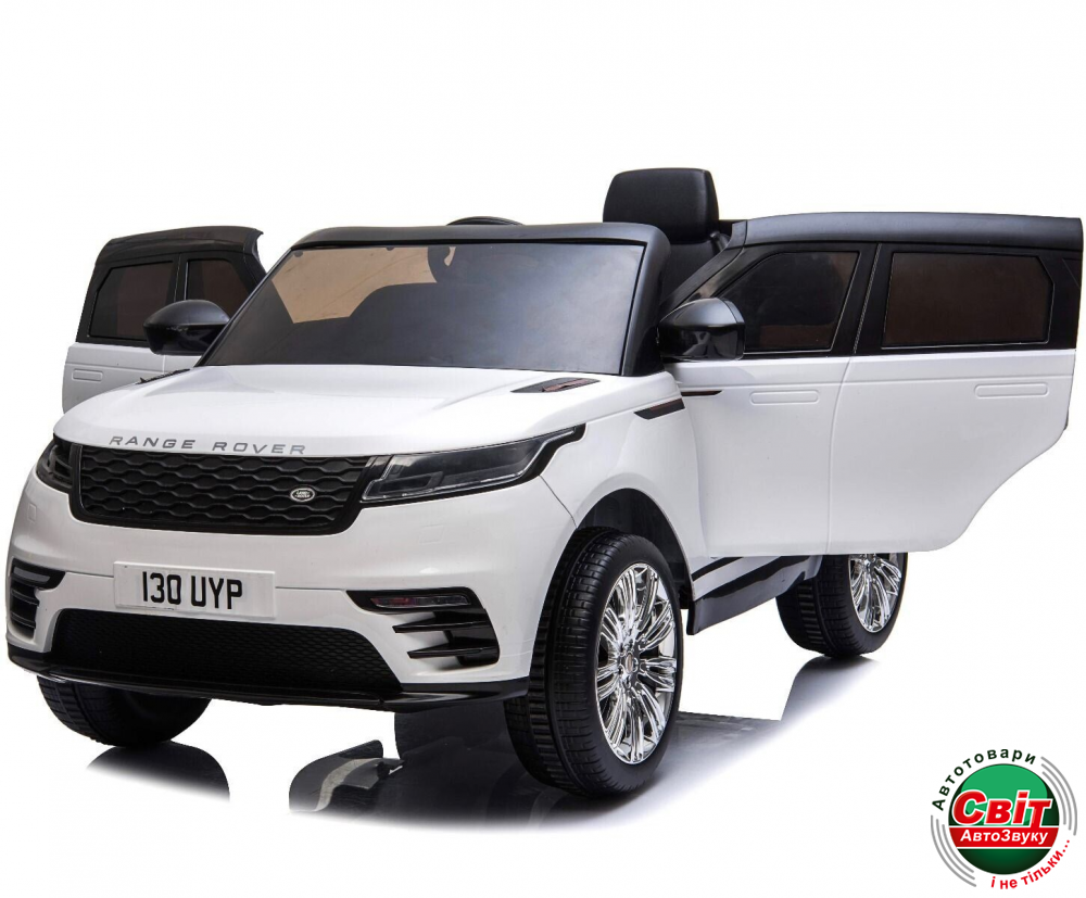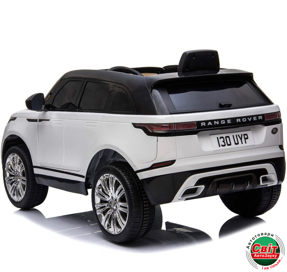 Дитячий електромобіль Kidsauto Range Rover Velar 2020 білийДетский внедорожник Range Rover Velar 2020. Мягкие колеса из EVA-резины, амортизаторы, плавный “Старт-стоп”, кожаное сидение с ремнем безопасности позаботятся о безопасности и комфорте ребёнка. В автомобиле предусмотрено водительское и дистанционное управление. Пульт управления (2,4G) позволяет родителям контролировать скорость, направление движения, и остановить машину кнопкой «STOP». Музыкальный руль, МР3-плеер с FM-радио поднимут малышу настроение. В открывающийся багажник можно положить любимую игрушку. Яркие LED-фары и обеспечат уверенность и безопасность в вечернее время.