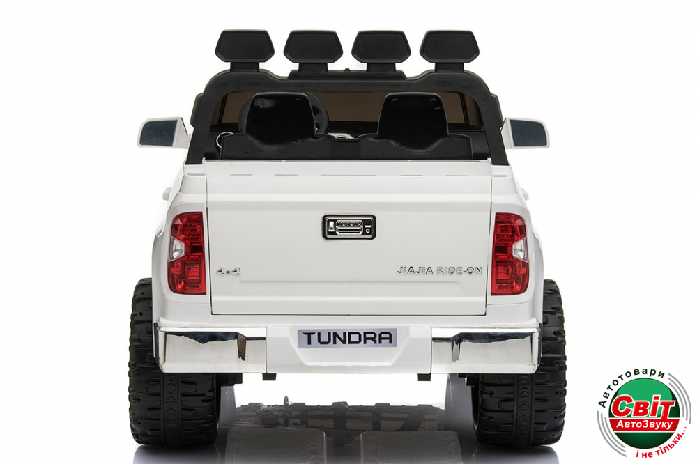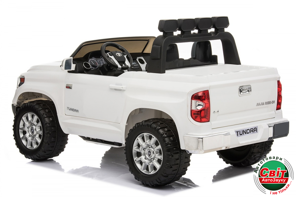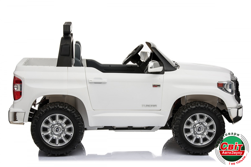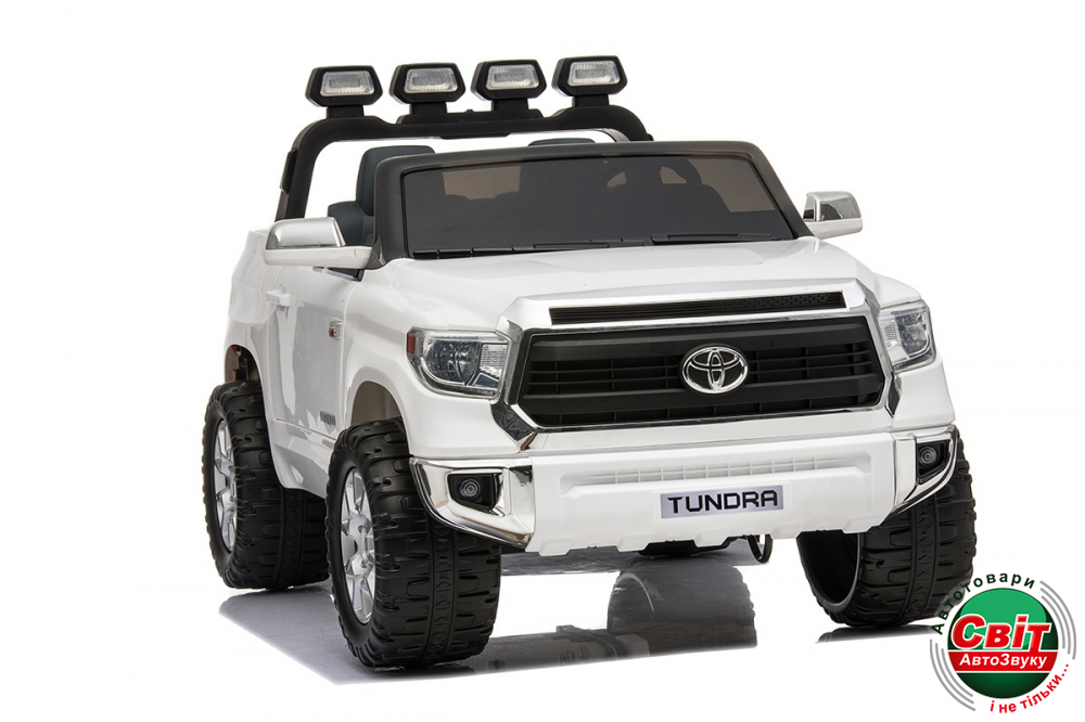 Дитячий електромобіль Kidsauto Toyota Tundra Premium RC WhiteДвухместный внедорожник с рулевым и дистанционным управлением. Пульт управления оснащен кнопкой «Stop», кнопками управления скоростью и направлением движения. Безопасный и уверенный драйв по «пересеченке» обеспечат мощные (2х120Вт) моторы, большие мягкие EVA-колеса, функция «плавный Старт/стоп». Яркая LED-оптика станет незаменимой в вечернее время, а МР3-плеер и музыкальный руль сделают прогулку еще более увлекательной.