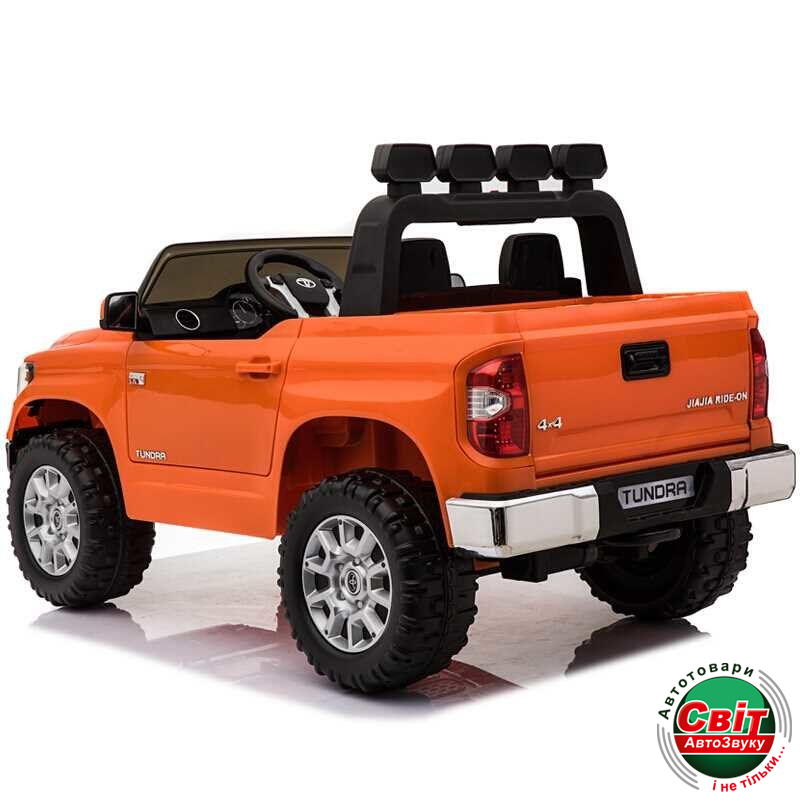 Дитячий електромобіль Kidsauto Toyota Tundra small OrangeДвухместный внедорожник с рулевым и дистанционным управлением. Пульт управления оснащен кнопкой «Stop», кнопками управления скоростью и направлением движения. Безопасный и уверенный драйв по «пересеченке» обеспечат мощные (2х45Вт) моторы, большие мягкие EVA-колеса, функция «плавный Старт/стоп». Яркая LED-оптика станет незаменимой в вечернее время, а МР3-плеер и музыкальный руль сделают прогулку еще более увлекательной.
