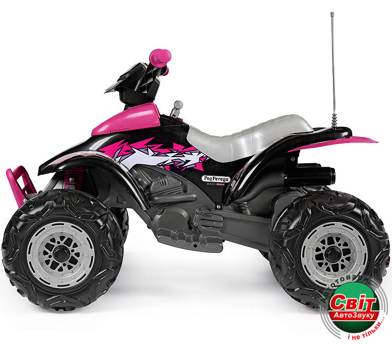 Дитячий квадроцикл Peg-Perego Corral T-Rex 330 W РожевийУльтрасовременная модель традиционного стиля Peg-Perego, воплощенная в уникальном электрическом квадроцикле. Подходит для активных детей от 3х лет и старше. Имеет электронную приборную панель с кнопкой запуска, передние светодиодные фары, индикатор состояния батареи, клаксон, звук мотора, вход для МР3. Работает от аккумуляторной батареи 12V/8Ah.