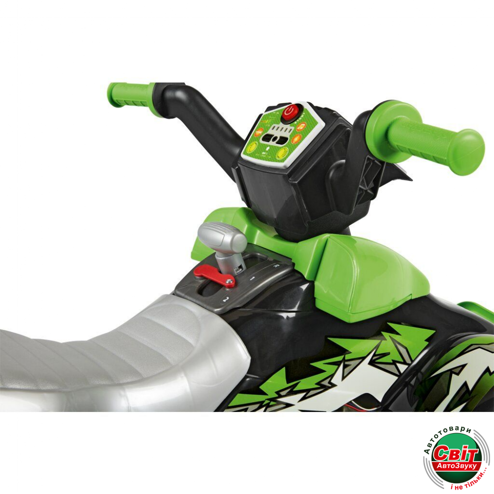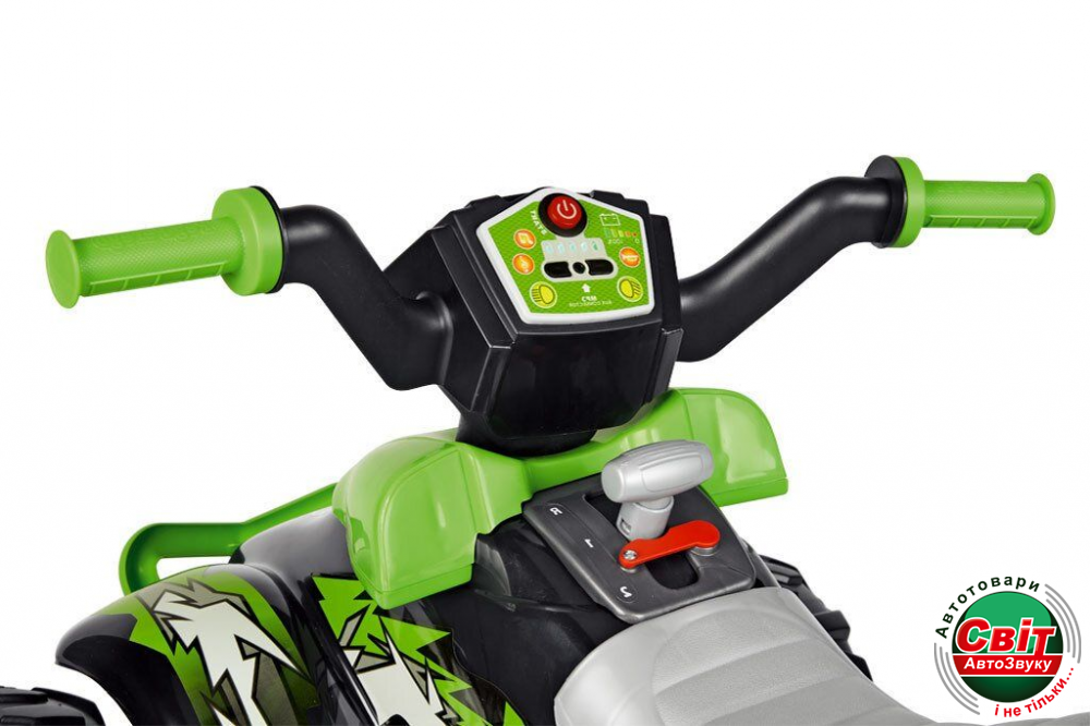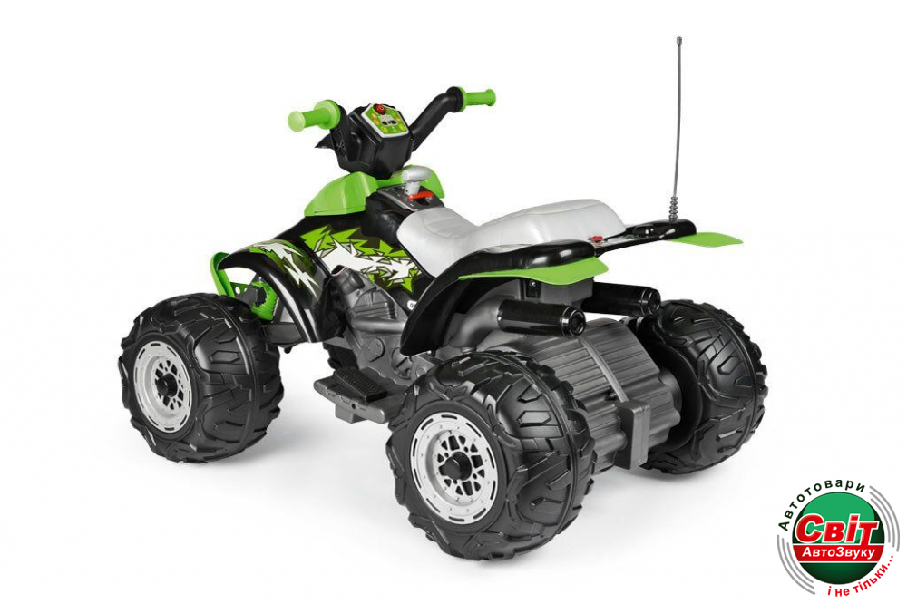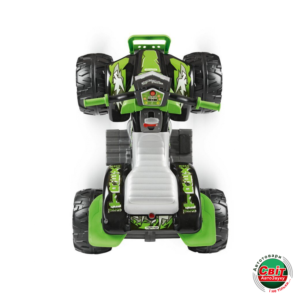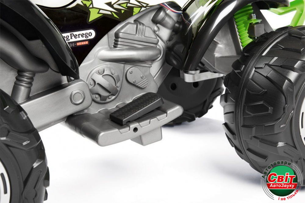 Дитячий квадроцикл Peg-Perego Corral T-Rex 330 WНовая, улучшенная версия популярной модели Corral T-Rex от Peg-Perego. Теперь с усиленным мотором 330W, LED-фарами, аудио-плеером и индикатором заряда батареи. Обновился и дизайн квадроцикла. Удобное электрическое питание от батареи на 12 вольт, в сочетании с большими колесами, дающими безопасное расстояние до земли при поездке, делают этот квадроцикл выбором №1 в сегменте среднеразмерных детских квадроциклов в Европе.