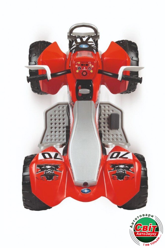 Дитячий квадроцикл Peg-Perego Polaris Outlaw 330 WPegperego-Perego Polaris Outlaw 330W - детская версия “взрослого” Polaris OUTLAW, признанного лидера в своем классе. Предназначен для детей от 3 лет. Лицензия “Polaris”. Два мотора по 165 W каждый. Герметичный аккумулятор 12V/8Ah. Две скорости движения вперед (3.5 км/час и 7.4 км/час) и одна – назад (3,5 км/час). Система автоматического торможения (акселератор и тормоз оборудованы в одной педали). Преодоление подъёма мах=17 %. Защита кистей рук. Новые off-road протекторы. Защитный «клык» на переднем бампере. Обновленная версия, добавлено: электронная приборная панель с кнопкой запуска, передние светодиодные фары, индикатор заряда батареи, звук мотора, клаксон, вход для МР3.