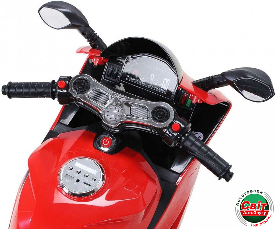 Запоминающийся внешний вид дополнен отличным функционалом: два мотора по 35 Ватт, колеса из ударопрочного полипропилена с резиновой накладкой по центру профиля для отличного сцепления с любым дорожным покрытием, дополнительные боковые колесики для хорошей устойчивости, эргономичное сиденье из кожзама, амортизатор для комфортного катания, боковые зеркала и задние стопы из мягкого пластика, магнитола для прослушивания любимой музыки.