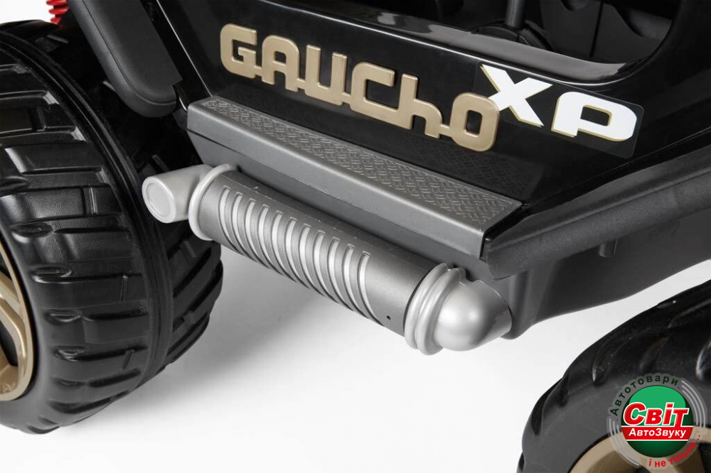 Peg Perego Gaucho XP - электромобиль, предназначенный для передвижения не только и не столько по ровной, как по пересечённой местности с выбоинами и кочками. Машина не боится ни луж, ни слякоти, ни снега. Высокий клиренс, большие OFF-Road колёса и мягкая подвеска на амортизаторах позволит кататься по бездорожью максимально комфортно.