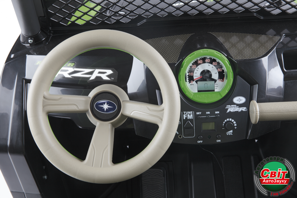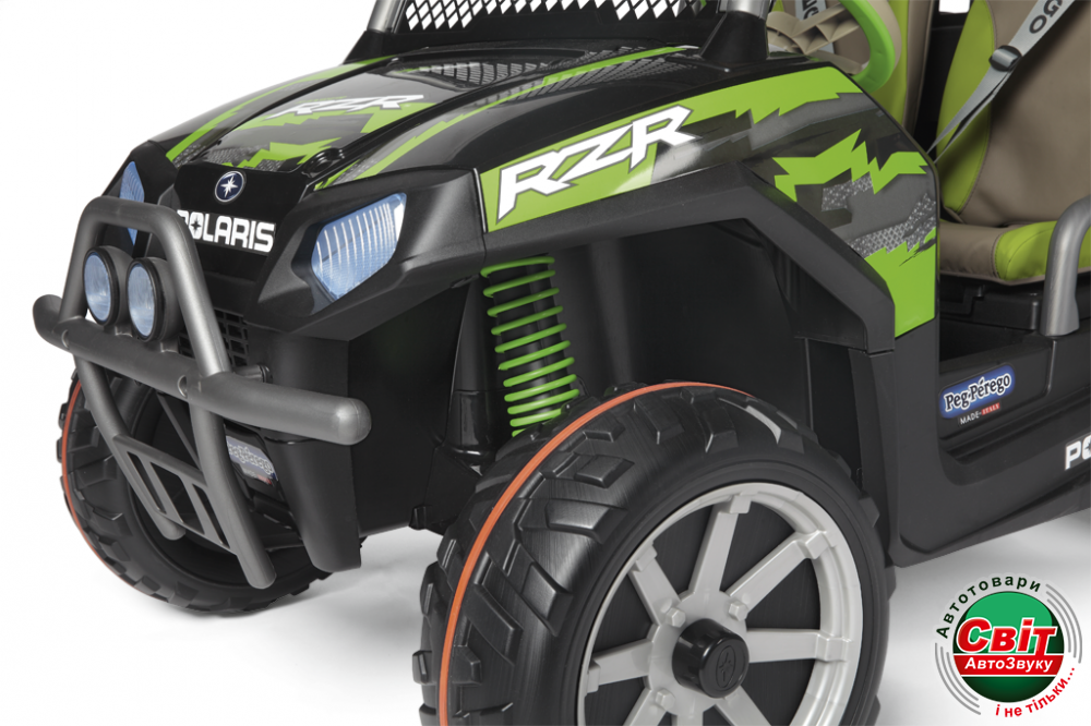Дитячий позашляховик Peg-Perego Polaris Ranger RZR 24VБескомпромиссный внедорожник Polaris Ranger RZR лицензирован производителем «взрослых» внедорожников Polaris® и является точной уменьшенной версией оригинальной модели. Высокий клиренс, амортизаторы и агрессивные протекторы позволяют ездить по любому бездорожью.