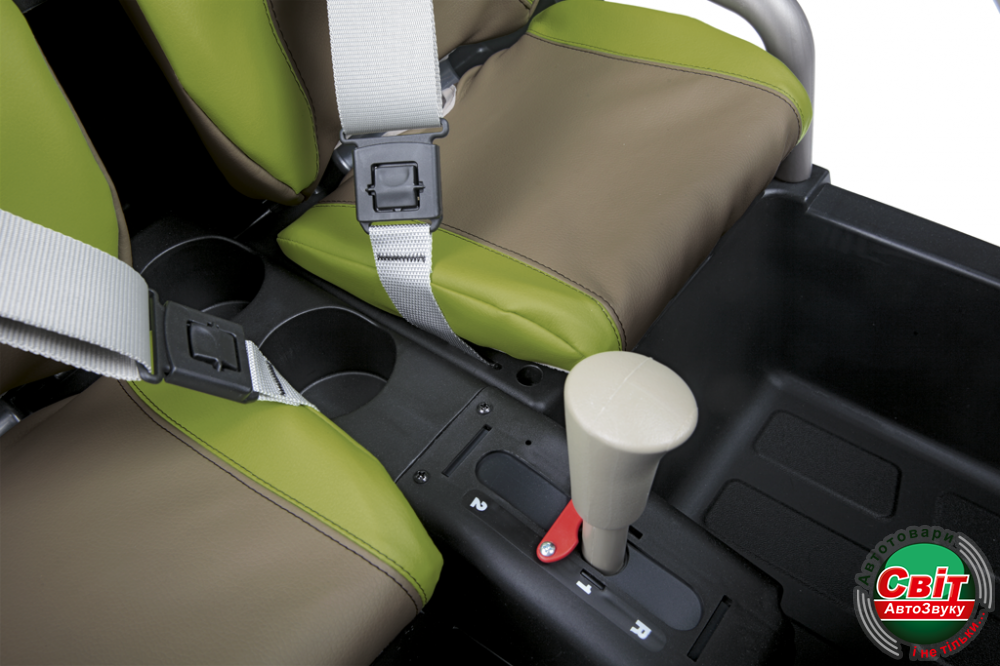 Конструкторы PEG-PEREGO создали все условия для безопасного вождения и получения максимального удовольствия от управления Polaris Ranger RZR. Создатели этой машины снабдили ее коробкой - автомат. Теперь юному водителю не нужно отвлекаться для переключения скоростей, а специальная функция «Кик-даун» обеспечит суперускорение при максимальном нажатии на педаль газа. Эта функция приводит в восторг всех, кому довелось ее опробовать. Надежные амортизаторы помогут справиться с ухабами и неровностями дороги, а мощный аккумулятор (24V) позволит проезжать до 5 км без перезарядки.