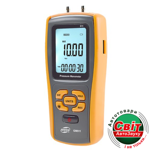 Диференціальний мікроманометр Benetech GM511Цифровой дифференциальный манометр Benetech GM511 (0.01/10 кПа) USB интерфейс, МАХ давление 50 кПа, АТС.
