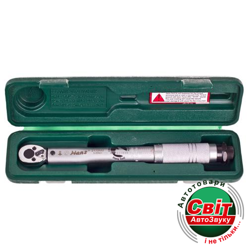 Динамометричний ключ 1/4"DR 5-25HM, 275мм, 580гр. (2170Nm)Динамометричний ключ 1/4 дюйма HANS 2170Nm для профессиональных работ по монтажу крепежных элементов резьбового типа с соблюдением затяжки заданного усилия. Ключ относится к ключам предельного типа, со степенью затяжки щелчкового типа.