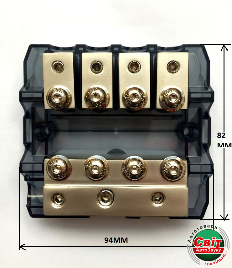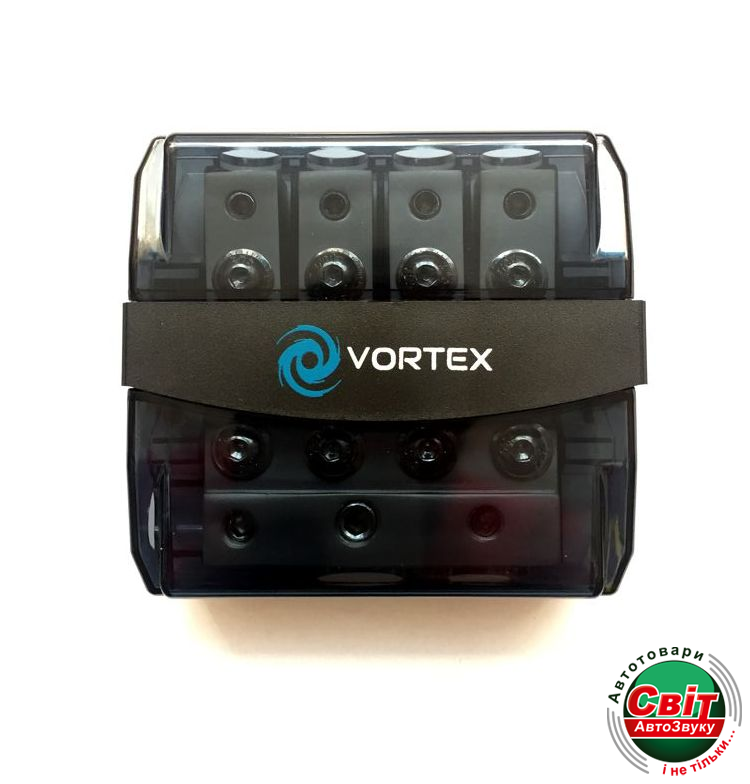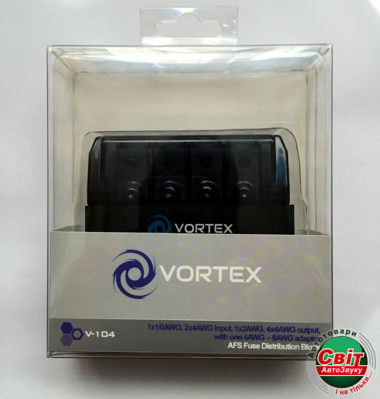 Дистриб'ютор живлення Vortex V-104Vortex V-104 - распределитель питания автомобильный с предохранителями. Входы - 1 x 1/0AWG, 2 x 4AWG , выходы - 1 x 2AWG, 4 x 4AWG. Поддержка 4AWG-8AWG с помощью адаптеров.