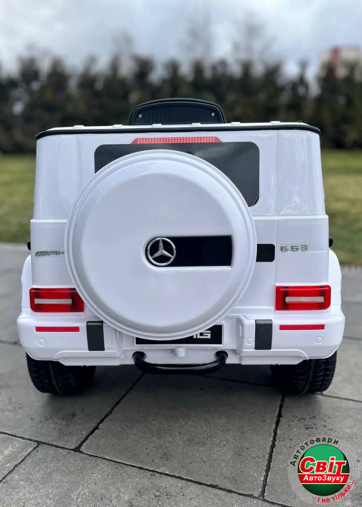 Дитячий електромобіль Kidsauto Mercedes-Benz G63 AMG NEW (білий) (BBH-0002H white)Дитяча версія позашляховика Mercedes G63 AMG ліцензії Mercedes-Benz. Модель поповнила широку лінійку модифікацій легендарного позашляховика та представлена у стилі оновленого кузова, поєднуючи у собі високу якість бренду, деталізацію та комфортний салон. Модель укомплектована м'яким кріслом з еко шкіри, безшумними EVA-колесами, пультом керування та світловими та звуковими ефектами.
