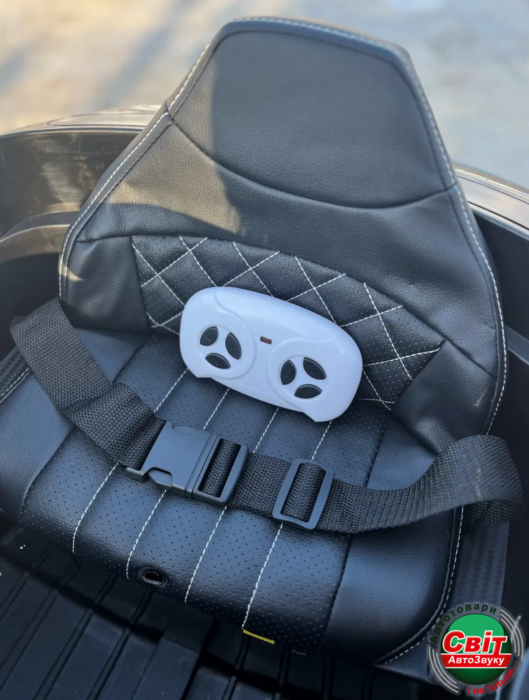 Пульт управління Bluetooth 2,4G. За допомогою пульта батьки можуть обирати напрямок руху, незалежно від обертання керма дитиною. Крім цього, пульт дозволяє встановити безпечну швидкість (3х-швидкісний режим) і навіть екстрено зупинити машину кнопкою «Стоп».