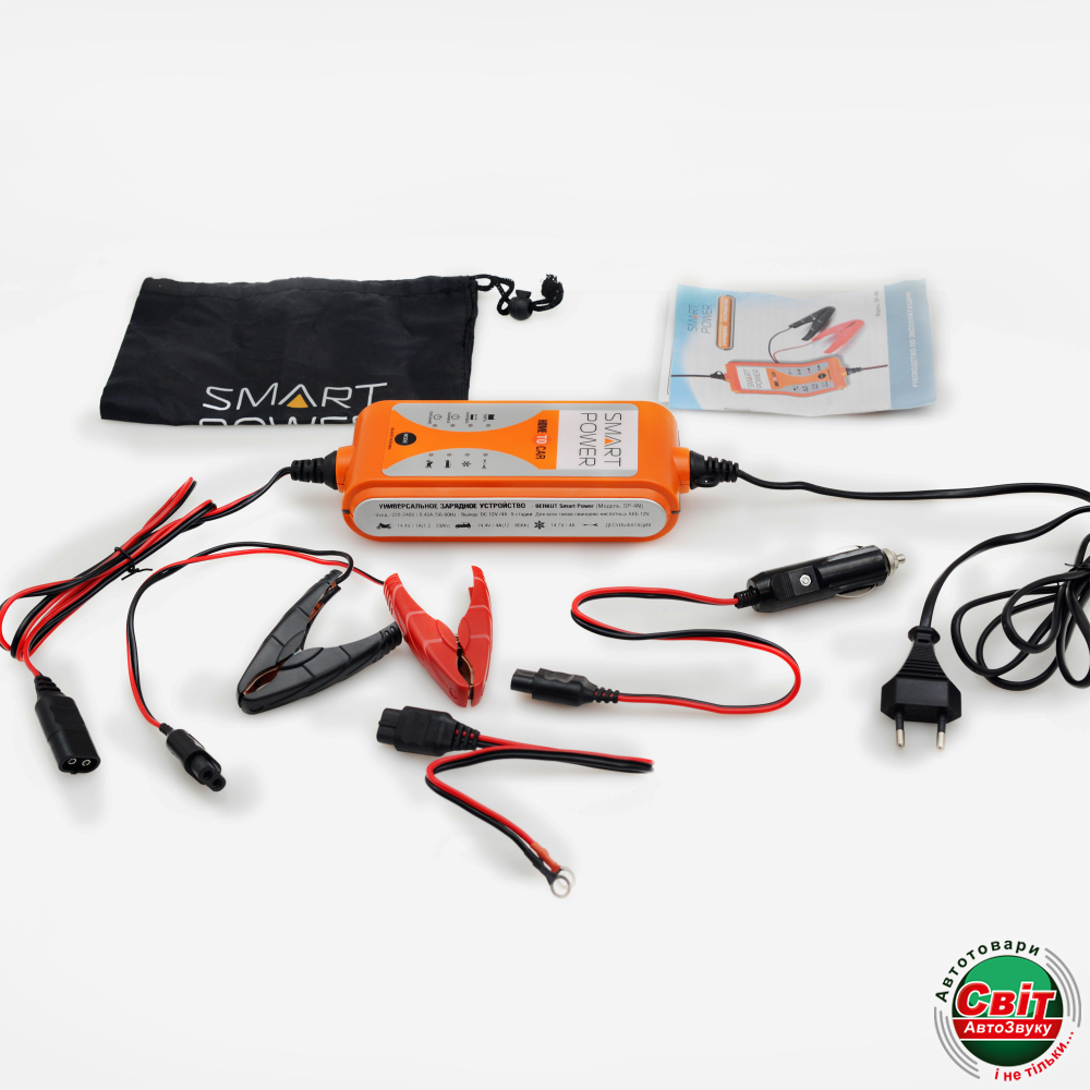 Портативний універсальний зарядний пристрій BERKUT Smart Power SP-4N призначений для обслуговування та зарядки всіх типів свинцево-кислотних батарей ємністю до 80 А*год та напругою 12 В. Живлення організується від побутової мережі змінного струму 220 В. Головна особливість SP-4N – повна автомат . Необхідно лише задати відповідний режим, і пристрій все зробить саме. На вибір чотири режими роботи: заряджання АКБ мотоцикла, заряджання АКБ автомобіля, зимова зарядка автомобільного акумулятора та десульфатація (відновлення) акумулятора.