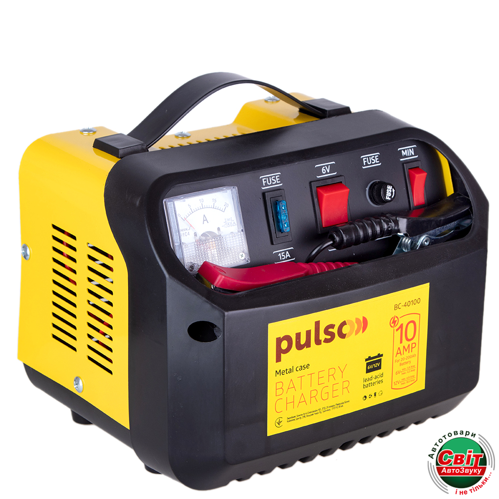 Зарядний пристрій для акумуляторів PULSO BC-40100Зарядний пристрій 6 / 12 PULSO BC-40100 виготовлено з якісних матеріалів, має хороші комплектуючі і відмінна якість зборки. Є всі можливі види захисту від короткого замикання, від перевантаження, від неправильного підключення акумулятора.