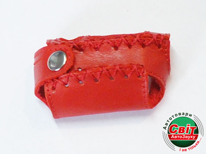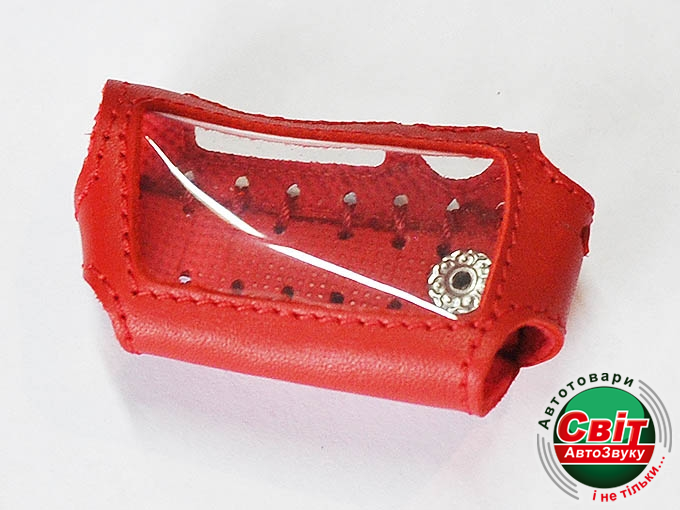 Чехол для брелков сигнализаций Pandora. Изготовлен из натуральной кожи красного цвета, имеет силиконовые вставки в информативных частях брелока.