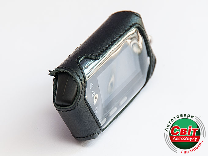 Чехол для брелков сигнализаций Pandora. Изготовлен из натуральной кожи чёрного цвета, имеет силиконовые вставки в информативных частях брелока.