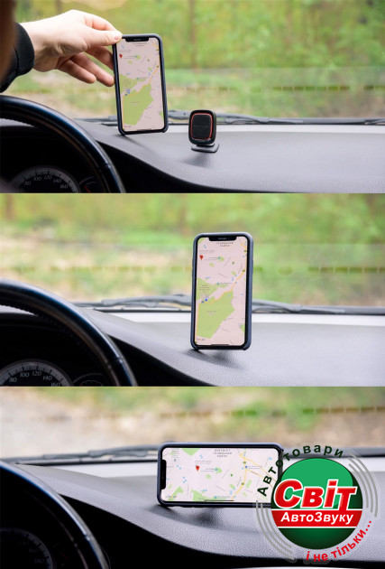 - Максимально легкая установка: крепление просто приклеивается с помощью двухстороннего скотча 3М в любом удобном месте Вашего автомобиля
