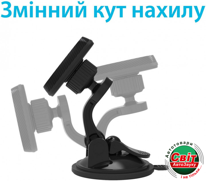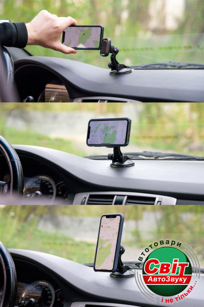 - Максимально легкая установка: крепление просто устанавливается в максимально удобное место на лобовом стекле или панели автомобиля, и фиксируется присоской с зажимом и гелевой клейкой основой