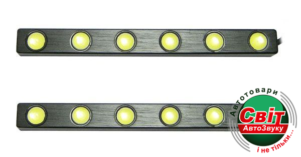 2 фарипотужність 12W (6 світлодіодів за 1W в одній фарі)розмір фари 145x14x14 (д.ш.)корпус: алюмінієвий радіаторДвухсторонний скотч