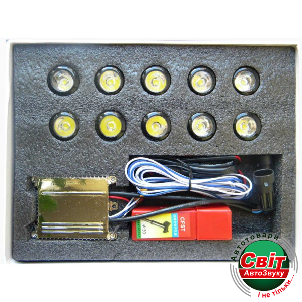 - Количество светодиодов: 5 x 2 фары, всего 10 шт.
