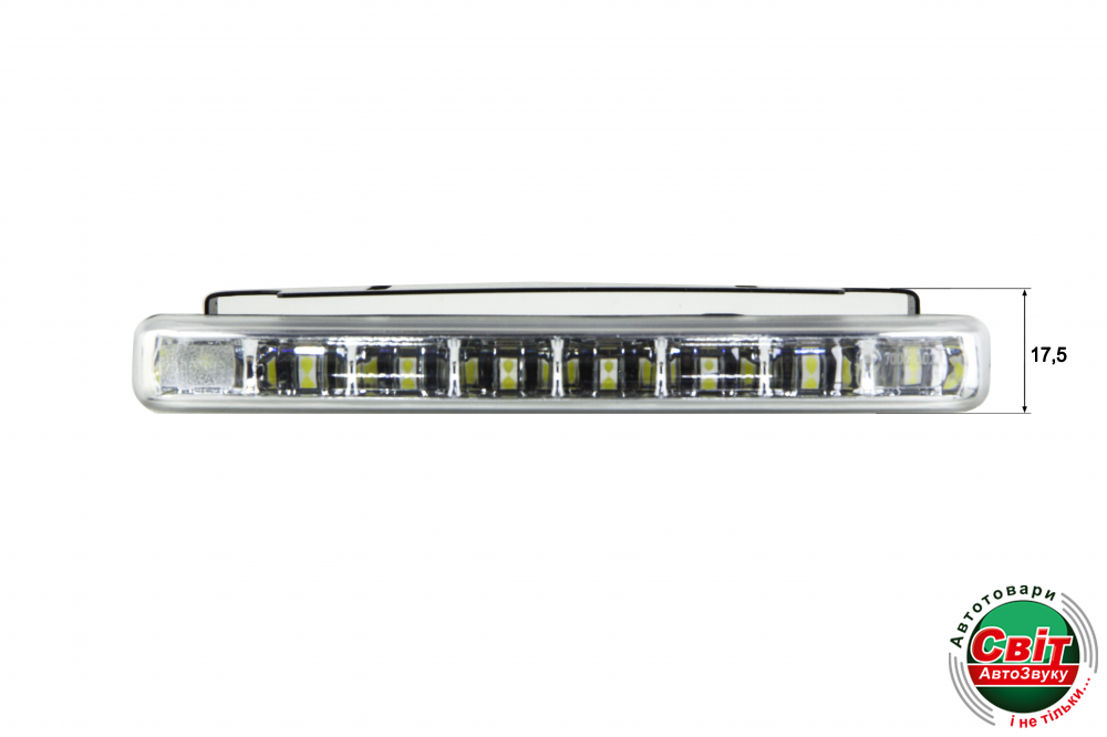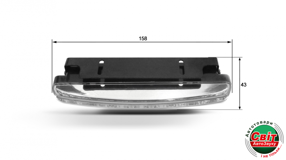 Фара имеет сравнительно небольшие размеры 158х43х17,5 (мм), что подчеркивается в ее названии.