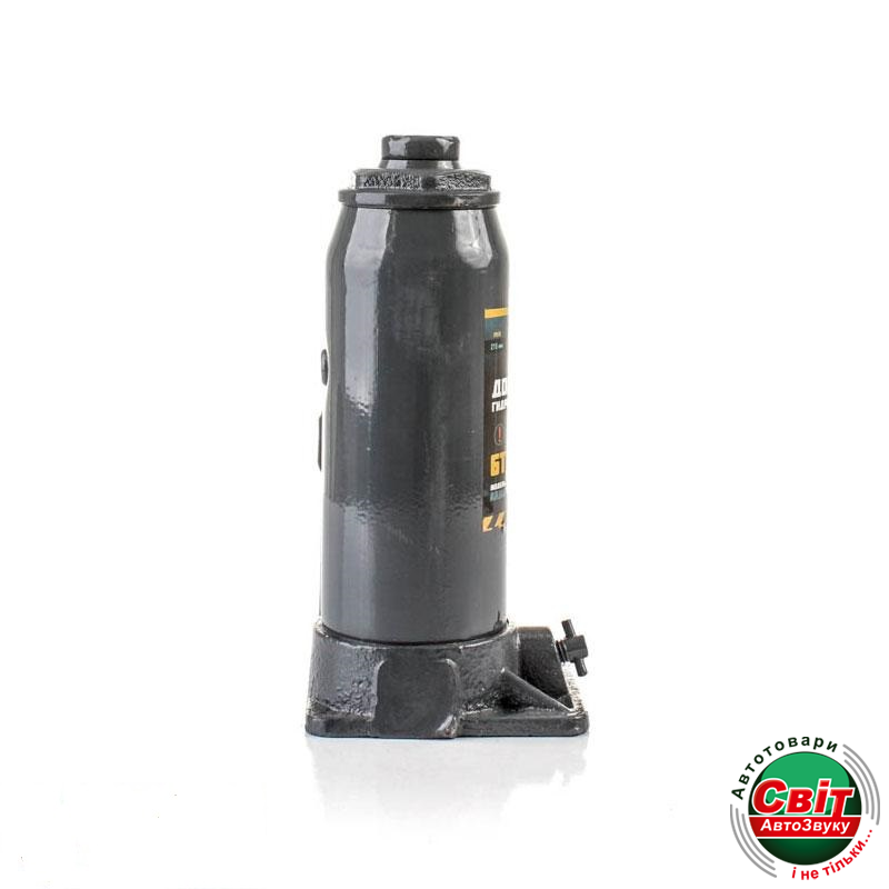 Домкрат ARMER ARM-6Гідравлічний домкрат Armer ARM6 універсальний вантажопідіймальний механізм, призначений для підіймання, утримання та фіксації автомобіля, у процесі проведення ремонтних і діагностичних робіт. Модель ARM6 пляшкового типу, має максимальну вантажність 6тонн, чого цілком досить для легкового автомобіля або мікроавтобуса. Перевагою цього домкрата є гарна висота підіймання 400 мм і висота підхоплення 215 мм, що дає змогу розширити сферу застосування й ефективно виконувати ремонтні роботи. Подовжена металева приводна ручка, складаної конструкції, передає посилення на насос, що нагнітається, де нагнітається робоча рідина, яка забезпечує плавний хід під час здійснення підіймання й опускання вантажу. Конструкція домкрата представлена у формі пляшки, корпус якої виготовлений із міцного металу.