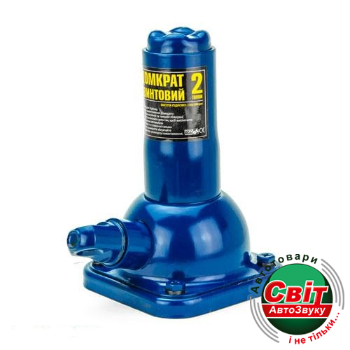 Домкрат Vitol ДМ-3852Т (ST-107B)Автомобілісти знають, що дорога щедра на неприємні сюрпризи Особливо завдає клопоту пробиття колеса, за якого потрібно поставити запаску, а їзда на спущеному колеса до найближчої станції техобслуговування може загрожує куди серйознішими проблемами з кермовою системою або підвіскою. У такій ситуації механічний (телескопічний) домкрат Vitol ST-107B/ДМ-3852Т є не тільки найнеобхіднішим бортовим інструментом, але й незамінним помічником. З його допомогою легко поміняти колесо, здійснити необхідний ремонт автомобіля або поточне технічне обслуговування. Модель Vitol пляшкового вигляду, з максимальною вантажністю 2тонн, чого цілком досить для легкового автомобіля або мікроавтобуса. Перевагою цього домкрата є гарна висота підіймання 390 мм і висота підхоплення 175 мм. Корпус домкрата, у формі пляшки, повністю виготовлений із міцного металу, на корпус нанесено два шари фарби для запобігання корозії. Металева ручка для обертання штока має складану конструкцію.