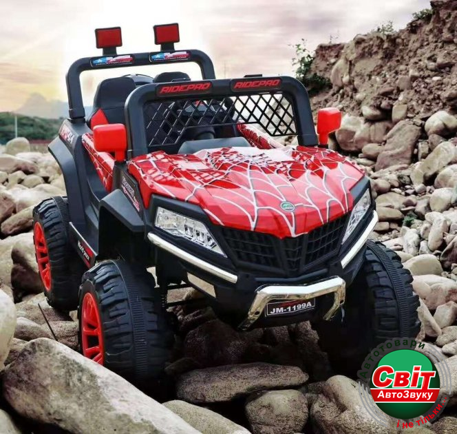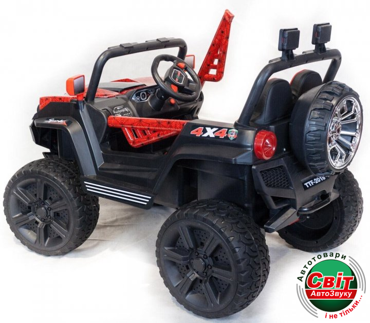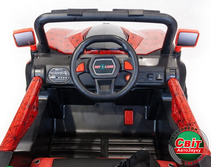 Двомісний баггі Kidsauto 1199 Red Spider 4x4 ( червоний лак)Постоянный полный привод, 4 двигателя. Большие резиновые колеса EVA. Высокий клиренс. С такими данными для багги нет преград. Можно кататься по любой поверхности, земля, трава, грунтовые дороги, асфальт. Амортизаторы на передних и задних колесах для комфортной езды. Заводится с кнопки. При включении идет звук заводящегося мотора.