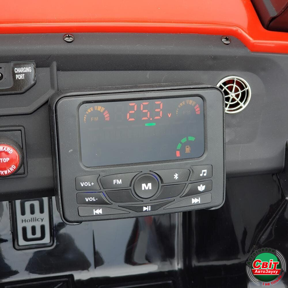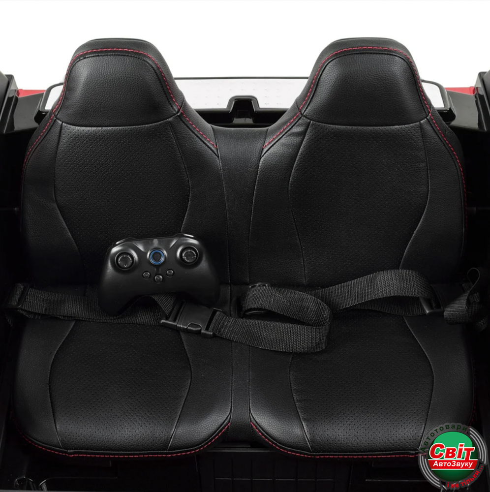 Предусмотрено, как водительское управление, так и при помощи пульта. Пульт управления Bluetooth 2,4G. При помощи пульта родители могут выбирать направление движения, независимо от вращения руля ребенком. Кроме этого, пульт позволяет установить безопасную скорость (3х-скоростной режим) и даже экстренно остановить машину кнопкой «Стоп».
