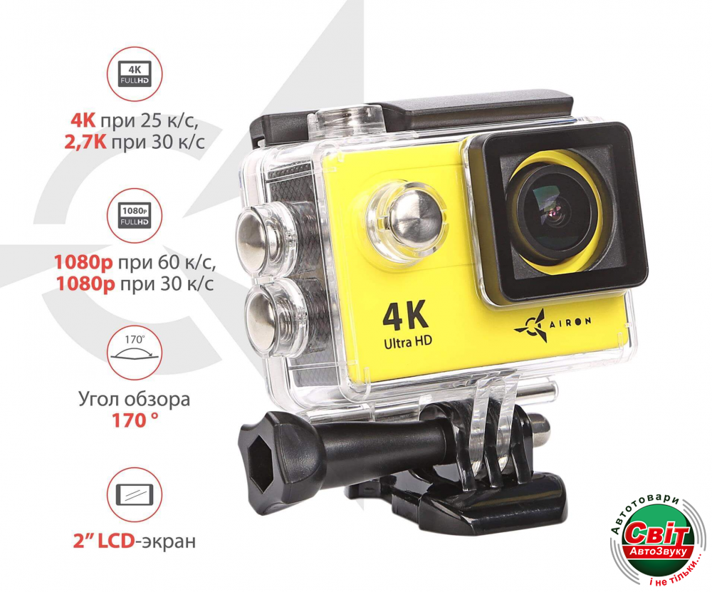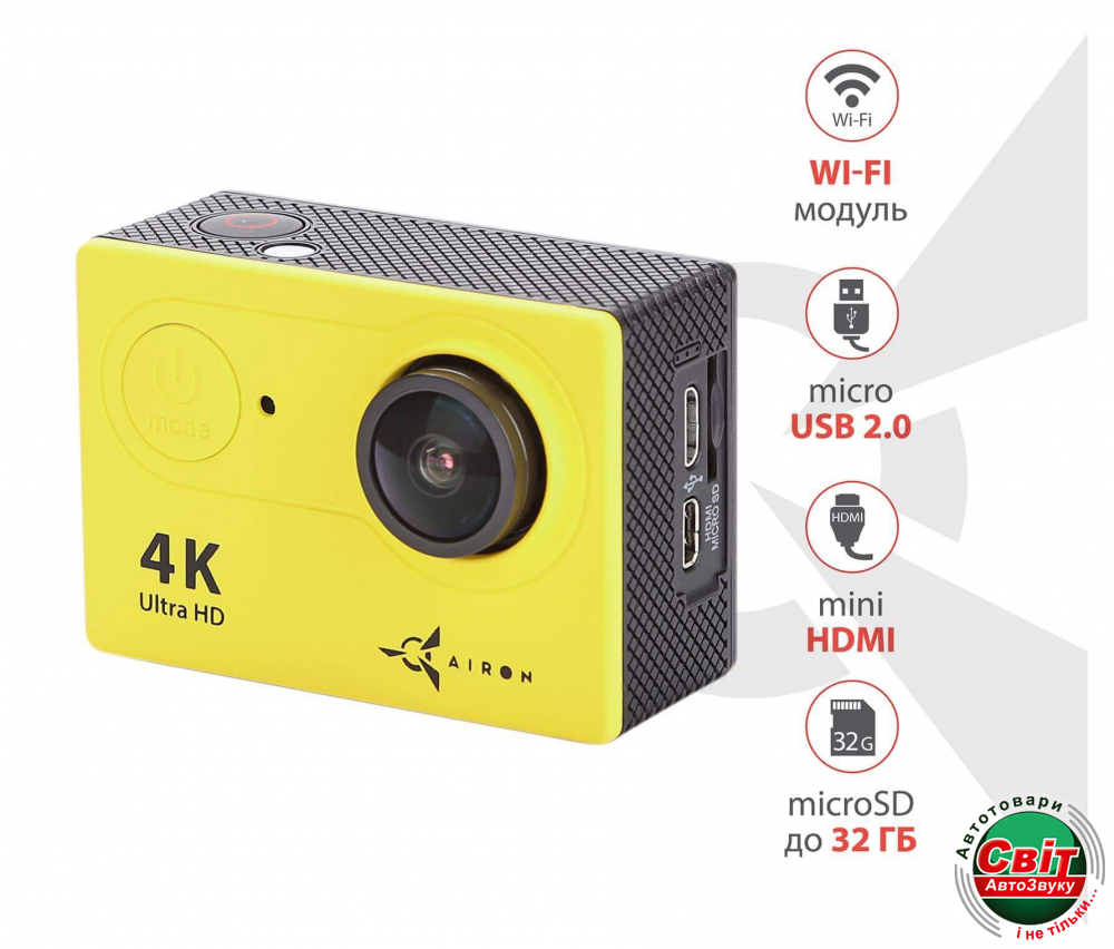 - ›Екшн-камера AIRON ProCam 4K yellow (4822356754452)