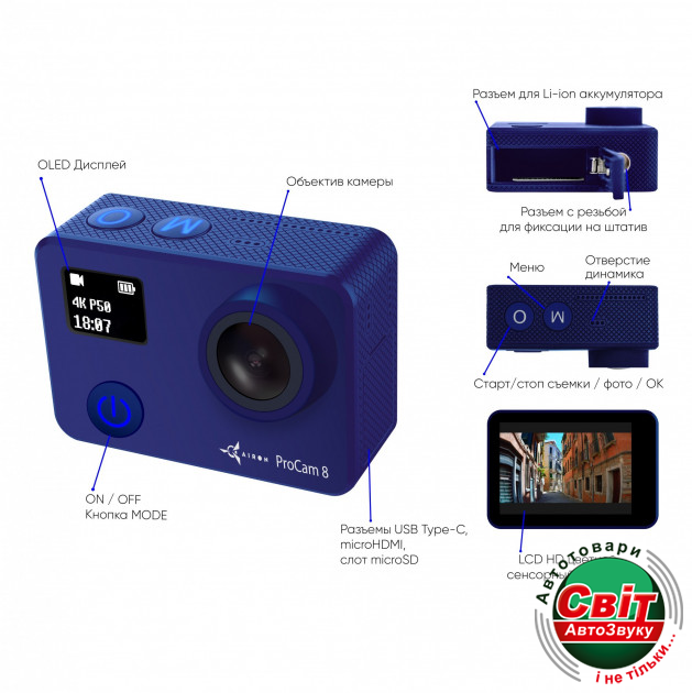 - ›Екшн-камера AIRON ProCam 8 Blue (4822356754475)