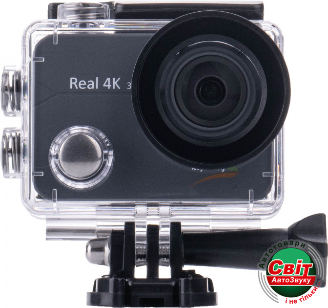 Екшн-камера виконана в пластиковому корпусі і з захищеним боксом в комплекті (IP68), що дозволяє занурюватися з камерою на глибину до 30 метрів При якості в 4K UHD 30 fps або Full HD 90 fps вам вистачить заряду акумулятора ємністю 1350 mAh на кілька годин запису