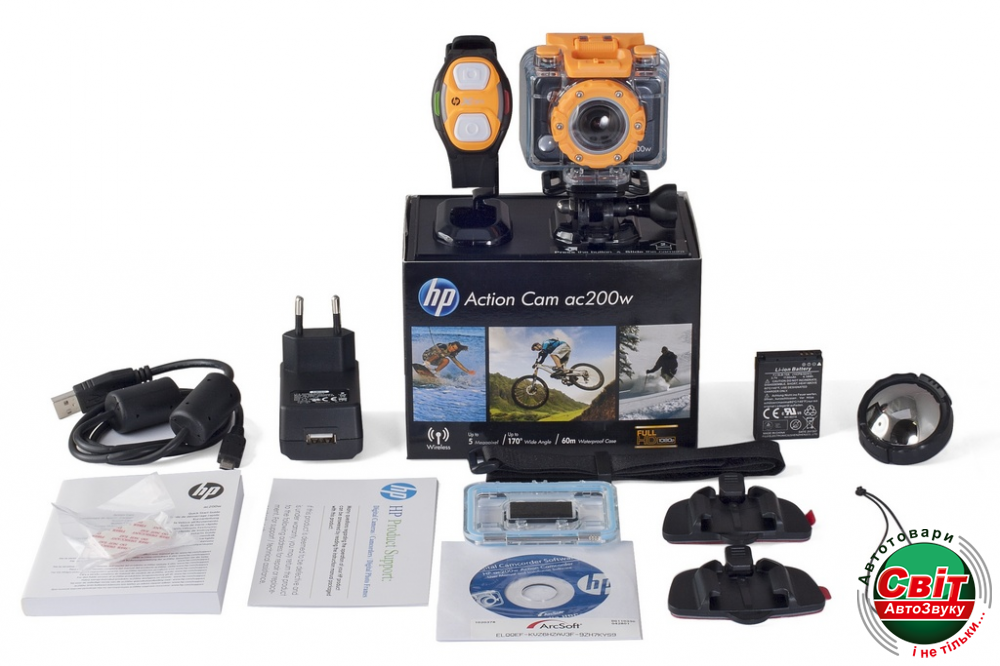 Экшн hd видеокамеры камера HP ac200w предназначена в первую очередь для любителей экстремальных видов спорта, которые нуждаются в прочной камере для видео- и фотосъемки. Екшн-камера HP ac200w с легкостью монтируется на различных поверхностях и обеспечивает качественную съемку плаванья на байдарках, катание на горных велосипедах или вертолете, спуска на лыжах. Программное обеспечение экшн камеры  (HP XCAM) позволяет увидеть то, что видит камера с помощью смарт-телефона или планшета. Когда экшн-камера HP ac200w установлена на расстоянии от объекта съемки используется дистанционный wi-fi пульт управления, крепящейся на запястье пользователя.