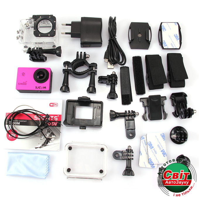 Камера SJ4000 WiFi подойдёт практически для любых видов спорта, в комплекте вы найдёте крепления на велосипед, на шлем, липучки и ремни, позволяющие закрепить камеру на любые поверхности.