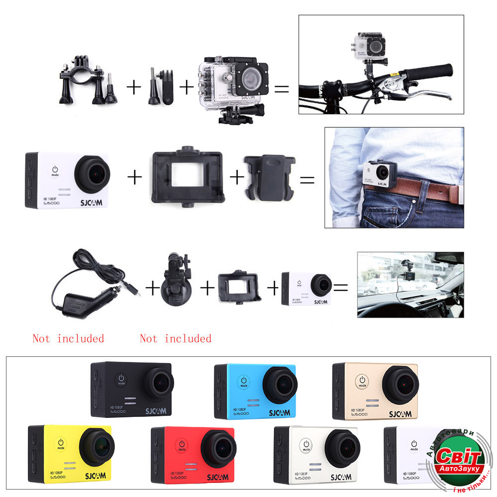 Екшн-камера SJCAM SJ5000 BlackSJCAM SJ5000 экшн камера с водонепроницаемым кейсом, снимает FullHD видео 1080р 30 к/с. с углом обзора 170 градусов, имеет встроенный дисплей 2" для просмотра видео и настройки камеры, съемный аккумулятор, в стандартной комплектации имеет множество креплений
