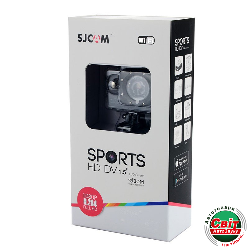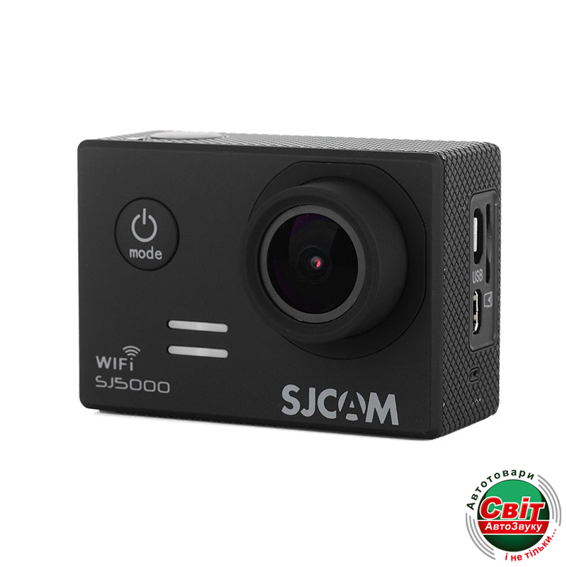Екшн-камера SJCAM SJ5000 Wi-Fi BlackSJCAM SJ5000 Wi-Fi экшн камера с водонепроницаемым кейсом, снимает FullHD видео 1080р 30 к/с. с углом обзора 170 градусов, имеет встроенный дисплей 2" для просмотра видео и настройки камеры, съемный аккумулятор, в стандартной комплектации имеет множество креплений