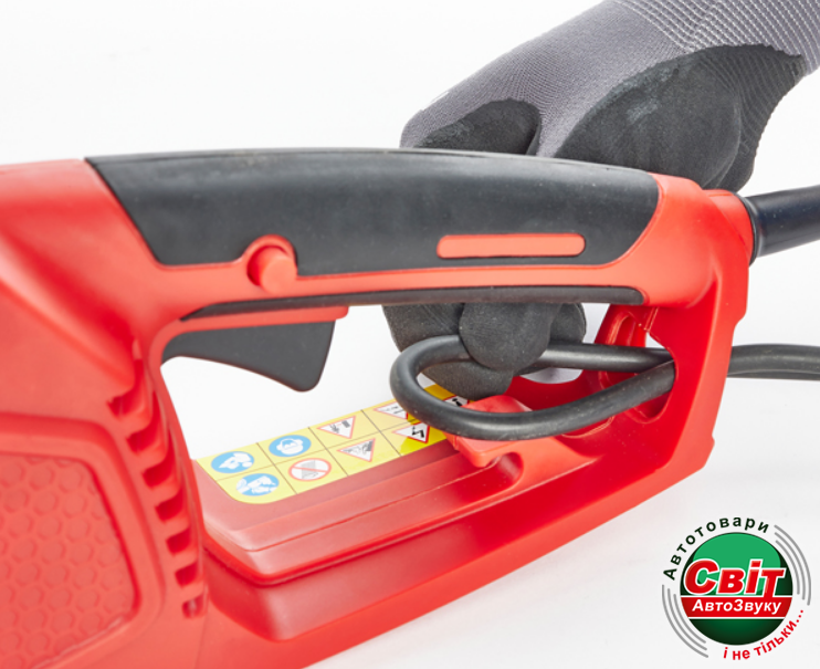 Оснащена двома пусковими тригерами для запобігання небажаної активації пристрою і має гачок для організації зайвого кабелю живлення. Закріплення кабелю живлення захищає його від порізів і спрощує маневрування пристроєм.