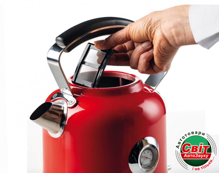 Електрочайник ARIETE 2854Гармоничные формы и изысканные детали характеризуют черты электрического чайника ARIETE 2854. Не просто чайник, а настоящий дизайнерский объект, способный украсить любую кухню с ее характерными деталями, такими как наружный термометр. Съемный фильтр и функция автоматического отключения питания делают его незаменимым союзником на кухне.